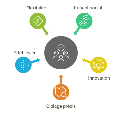 Une action alignée avec la politique de la ville de Tours. Partenariat avec entreprises locales et internationales. Mise en relation avec les associations présentes sur le territoire.